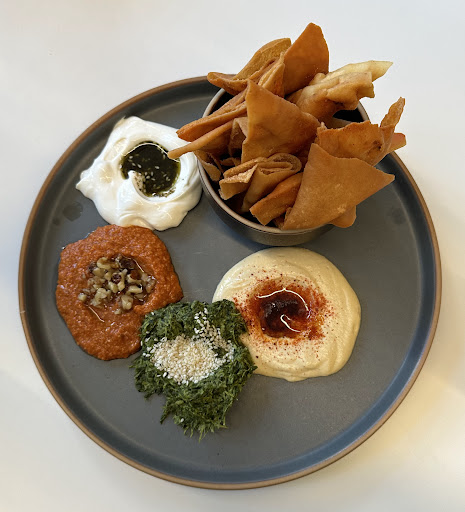 Food options were limited as they only offered snack dips, salads, and wraps catered by JamJar. We got the “Have It All” dip platter to try the hummus, spinach dip, roasted red pepper dip, and zaatar labneh (a yogurt based dip) with complementary pita chips. They gave us unlimited/refillable chips to finish the dips. The pita chips were extra crispy. My favourite dip was the original hummus!