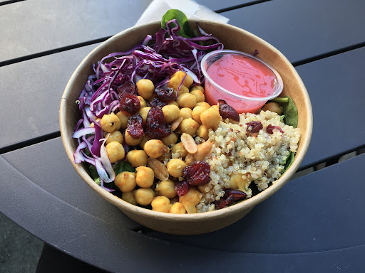 Read moreThis salad bar is located inside the Diamond Centre in the VGH complex, so it's an ideal location for those working at VGH or who have appointments there. In addition to the actual salad bar, there's a case of prepared grab-and-go salads and wraps, a hot pot bar, and some healthier/natural ingredients baked goods from To Live For Bakery. I just made a beeline to the grab-and-go fridge so I didn't get a super close look at the salad bar, but from what I can tell, the place looks exceptionally clean. There's two tables outside in a reserved patio for Purple Grain, but there's also plenty of seating in and around the building to take your food. The guy working the register is super friendly. I first tried a masala chickpea buddha bowl from the grab-and-go fridge. It was very fresh! The composition was simple, but I liked the spiced chickpeas. The raspberry vinaigrette that came with this bowl did not complement the chickpeas at all. It completely masked the masala seasoning of the chickpeas when they were mixed together. On my next visit I got the veggie samosa wrap and a carrot cake, and was glad I decided to try this place again because these were delicious. The samosa wrap was made with a soft flatbread filled with lots of vegetables and tangy tamarind chutney. Very filling. The carrot cake was exactly how I like it with lots of coarse shredded carrot and big walnut pieces. The prices are pretty reasonable. It's not anything fancy but the portions are decent and it's wholesome,...