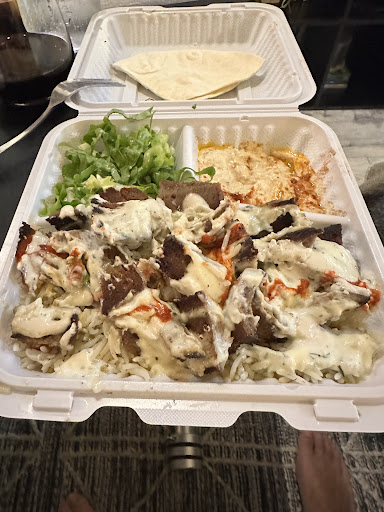 Didn’t actually eat in and my boyfriend got the food so I don’t know about the atmosphere, I got the chicken shawarma wrap. I don’t like Halifax style and apparently they don’t even have the sweet sauce, so perfect for me. So the chicken was a mix of thigh and breast which was fatty and delicious (not greasy), they use leaf lettuce instead of iceberg, which made it feel more full without making ME too full. BF got the chicken platter and falafels, the rice is nicely seasoned and everything is so flavourful in their own ways. The hummus was smooth and the garlic dip was garlicky, that being said, there was a lot of garlic in the whole meal but I don’t feel like I’m scaring vampires right after. My bf is sitting next to me and with every bite he’s saying “mmmm!! Ya we’re going here again!!” I don’t usually like falafels but he made me try them and he was right, they’re actually the star of our dinner. So crispy, and I have to say there’s something to be said about the taste of a dirty fryer or maybe heat of the fryer, that just really lends it to some foods, these falafels are one!!