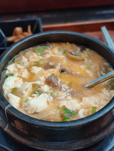 Read moreGreat place to eat late as they are open to 2am. It wasn't busy when we arrived at 7pm on a weekday and we got seated right away. I got the kimchi fishcake udon ($23) which was good. It is spicy but not overly spicy. The soup is delicious. Also got the bibim noodle ($25). You get a few choices for this and we picked ramen, bulgogi beef (+$3) and yuzu soy for the sauce. Sauce comes on the side and you pour it over. Also good! The yuzu sauce on its own is a mild vinaigrette. Mixed with the bulgogi sauce it's this amazing sweet mixture. There are a fair number of vegetarian dishes on the menu and they labeled. Average food price is about $20-$30 for a meal. Servers were very attentive and quick! The place was a little busy so it doesn't feel empty but not so busy that it's too noisy. It's easy to have a conversation here. Groups of 4 are easy. I'm pretty sure they can accomodate much larger groups by pushing tables together. They accept American Express. Good experience. I will need to come again to try some of the other good stuff...