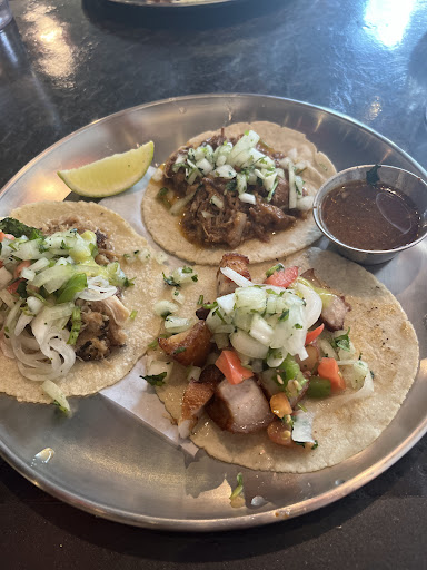 Came for dinner and waited about 10 minutes before being seated. Service was a bit slow as there was only one waitress but she was kind and got to us when she could. We ordered an array of tacos and they were very flavourful however the two I ordered, trompo and chicken, were a miss since the former was too salty ( though flavour was really good) and greasy with bottom of the pan burnt pieces while the latter was really dry and lacking in portion. What really made this not the best experience was seeing the kitchen right in the open and the kitchen crew work. The number of times I saw them wipe their nose as mouths with their gloved hands and then immediately stick their hand into a food bin to make the tacos with their hands was honestly horrifying, especially since I was waiting for my tacos to be made. I saw one worker eat a scrap piece out of the bottom of a container which Iâm all for, except he immediately touched the tacos he was making for other people after his lips made contact with the gloves. I think he open kitchen concept was cool except it was like they didnât even try to hide the constant wiping of their mouths/noses with the back of their hands. At least use an arm or anywhere that wasnât glove meant for touching food ONLY. Of course I felt fine after the meal since I assume none of the workers were sick or have food-borne pathogens but it was not pleasant to see all that was happening. I hope they can be more cognizant of touching only food and clean objects with their gloves in the future and change gloves when contaminated as I do want to try this...