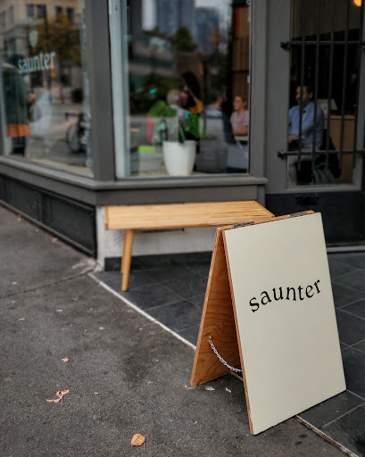 Saunter is a cool name for a coffee shop and the space is equally cool.Ā Vibe is crucial and saunter passes this test with ease. Ā The space is small and intimate but it has a minimalist design so it doesnāt feel cramped.Ā Also, it has lots of south facing windows, so itās always bright and that makes it feel bigger.