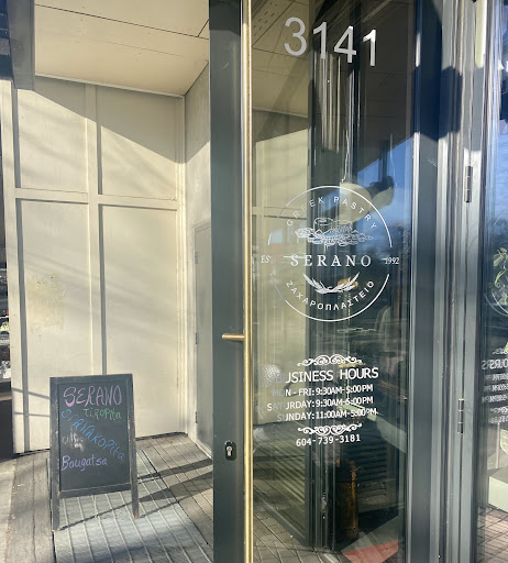 Read moreIn a city where prices have gone crazy Serano still represents incredibly good value. You get friendly service, yummy treats and all for a lot less than you would expect to pay. We just went there this morning to pick up my favourite Greek cookies Koulourakia (warning it’s hard to eat just one!!!) and decided to grab some coffees and treats and sit outside since the sun was shining. They only have one or two patio tables but still it’s so nice on a beautiful day. So 2 cold cappuccinos and 3 treats cost only $15! Seriously that’s great value for anywhere but particularly Vancouver. We love their Baklava, Bougatsa and Kok three traditional Greek desserts. They also have pieces of cakes and yummy cookies (I love the peanut butter cookie) so it’s very kid friendly. Their Spanakopita and Tiropita (like Spanakopita but only made with cheese no spinach) are also so good. Highly recommend you stop by if like me you...