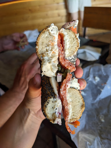 Read moreI looked up best bagels places in Vancouver because I was really craving some, so went here last week. Seeing they were open 24 hours, had good reviews, had a wide selection etc etc is what brought me in. Focusing on just the food - gotta say for all the hype I don't see what the attraction is. I have had better while in Vancouver and being honest I hate to say it but they were from Save-on-foods supermarket. While the ones from here are fresh and smell great (I do love sesame seed ones) the end product is sadly disappointing. For the price you pay the bagels ($17 for a dozen) they are small, and while the cinnamon and raisin smell great, once toasted the taste is bland. There is the ever so slightest taste of cinnamon that is easily covered with the taste of butter or cream cheese. The beloved sesame ones are nice and kept their taste but didnt give that craving a kick like I hoped. Comparison wise Costco has a dozen for $8 (yes you do have ro have the membership and they are not open 24 hours) and Save-on-foods ones run you about $10 or $11 for a dozen. The previous 2 lots are also thicker and bigger. For the $17 price it is sadly not worth it. They are a 5 minute drive away from me, but I don't think I will be back. I was hoping to find a new bagel place to call my regular, make bi weekly visits and collect fresh ones for lunch and brunch, but the craving still exists and will need to see if their other venue on Granville is any better - after the 6 remaining ones are defrosted and eaten.