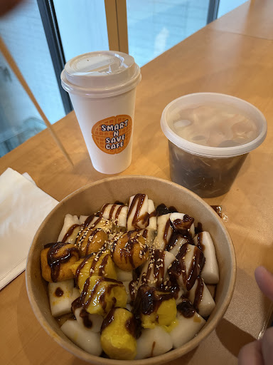 Read moreHoly cow! Thank you Smart N Save Cafe for opening up a snack shop that is not only super affordable but the food is actually very delicious! We heard about this eatery on social media recently and coincidentally passing by the area. The restaurant/cafe is a self serve kiosk model with no seating just a bar ledge near the front doors. The menu was easy to navigate and ordering from the kiosk was surprisingly easy. We ordered the rice rolls with curry balls and siu mai, imitation shark fin soup with fish paste and a hot Hong Kong style milk tea. 3 items total under $17 dollars what a bargain! The food was fresh and tasty. Soup was piping hot and the rest delicious! Would return daily...