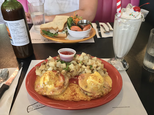 Cute place! Sometimes I like kitschy decor and sometimes I hate it, but this place, despite being really cheesy, didn’t feel over the top. I didn’t get as good a look at all of it as I would’ve liked to, but I thought the shelf of sports trophies was particularly funny. Also the placement with the kid’s drawing was so cute! Anyway, I’d never seen a reason to visit this restaurant because I’d had a few friends describe it as “hangover food”, which is not something I have much use for, but another friend suggested it for lunch and I actually thought it was pretty good! The food came out amazingly fast after we ordered, yet everything tasted freshly prepared. I had the Jimmy’s Greek Benedicts. I’d definitely say the flavours skewed more Spanish than Greek, and it was lighter on the feta than I was expecting, but nonetheless I really liked the sauce. The eggs were poached perfectly (the menu says that soft is the default if you don’t specify, but the waitress still checked with me). I don’t consider myself much of a potato fan, but I loved the breakfast potatoes! I liked that they weren’t deep fried so they weren’t greasy, dry, or crunchy, the green onions on top were a nice touch, and the house hot sauce was great. The portion size was generous, and I finished the whole thing but felt super full after - if it had been any larger I would’ve taken some home, but it was right in that sweet spot where I was just able to finish. I also got a crème brûlée shake. I asked if I could get the milk replaced with almond milk and they said yes and didn’t charge extra. They serve it in a glass but give you the “overflow” in a metal cup, and there was about as much extra in the cup as there was milkshake in the glass, so although I finished the whole thing by myself (to my own surprise), you could easily split one. I would probably go for one of the many more distinct flavours next time since the crème brûlée just tasted like a slightly custardy vanilla, but it was a really good shake and I thoroughly enjoyed it. The sprinkles and cherry on top were a nice touch. I will say I think it’s a little overpriced. Despite the generous portions, it is just diner food, and paying almost $30 (more with the tax and tip) for a benny ($19) and milkshake ($7.5) was a little disheartening. I would expect even really good diner food to be at a more affordable price, like maybe $16 max for the benny? The milkshake price was more justifiable because it was basically 2 milkshakes, but still I’d hope to pay ~$6 for this at a diner? But realistically, their rent in this neighbourhood might be high enough that this is what they actually have to charge to make ends meet so I don’t want to judge them too harshly - I was just surprised that I ended up spending as much as I would’ve spent at one of Vancouver’s bougie brunch spots at what looks like a diner. Our waitress was nice and perfectly attentive until we were done eating, where we sat around for a while after we were done waiting for her to take my friend’s plate. My friend did have some salad left which I guess the waitress might’ve just been waiting for her to finish, but it was quite a long wait without her touching the salad that I was a little surprised we had to sit around for. After finally trying this place, I see why it remains so popular! It’s not the place I’d chose to bring people visiting from out of town or recommend to tourists - I’d chose something a little more unique for that - but for people who live around here it’s definitely a fun place to check out, and I’d be happy to...
