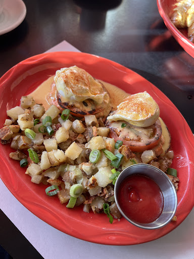 Cute place! Sometimes I like kitschy decor and sometimes I hate it, but this place, despite being really cheesy, didn’t feel over the top. I didn’t get as good a look at all of it as I would’ve liked to, but I thought the shelf of sports trophies was particularly funny. Also the placement with the kid’s drawing was so cute! Anyway, I’d never seen a reason to visit this restaurant because I’d had a few friends describe it as “hangover food”, which is not something I have much use for, but another friend suggested it for lunch and I actually thought it was pretty good! The food came out amazingly fast after we ordered, yet everything tasted freshly prepared. I had the Jimmy’s Greek Benedicts. I’d definitely say the flavours skewed more Spanish than Greek, and it was lighter on the feta than I was expecting, but nonetheless I really liked the sauce. The eggs were poached perfectly (the menu says that soft is the default if you don’t specify, but the waitress still checked with me). I don’t consider myself much of a potato fan, but I loved the breakfast potatoes! I liked that they weren’t deep fried so they weren’t greasy, dry, or crunchy, the green onions on top were a nice touch, and the house hot sauce was great. The portion size was generous, and I finished the whole thing but felt super full after - if it had been any larger I would’ve taken some home, but it was right in that sweet spot where I was just able to finish. I also got a crème brûlée shake. I asked if I could get the milk replaced with almond milk and they said yes and didn’t charge extra. They serve it in a glass but give you the “overflow” in a metal cup, and there was about as much extra in the cup as there was milkshake in the glass, so although I finished the whole thing by myself (to my own surprise), you could easily split one. I would probably go for one of the many more distinct flavours next time since the crème brûlée just tasted like a slightly custardy vanilla, but it was a really good shake and I thoroughly enjoyed it. The sprinkles and cherry on top were a nice touch. I will say I think it’s a little overpriced. Despite the generous portions, it is just diner food, and paying almost $30 (more with the tax and tip) for a benny ($19) and milkshake ($7.5) was a little disheartening. I would expect even really good diner food to be at a more affordable price, like maybe $16 max for the benny? The milkshake price was more justifiable because it was basically 2 milkshakes, but still I’d hope to pay ~$6 for this at a diner? But realistically, their rent in this neighbourhood might be high enough that this is what they actually have to charge to make ends meet so I don’t want to judge them too harshly - I was just surprised that I ended up spending as much as I would’ve spent at one of Vancouver’s bougie brunch spots at what looks like a diner. Our waitress was nice and perfectly attentive until we were done eating, where we sat around for a while after we were done waiting for her to take my friend’s plate. My friend did have some salad left which I guess the waitress might’ve just been waiting for her to finish, but it was quite a long wait without her touching the salad that I was a little surprised we had to sit around for. After finally trying this place, I see why it remains so popular! It’s not the place I’d chose to bring people visiting from out of town or recommend to tourists - I’d chose something a little more unique for that - but for people who live around here it’s definitely a fun place to check out, and I’d be happy to...