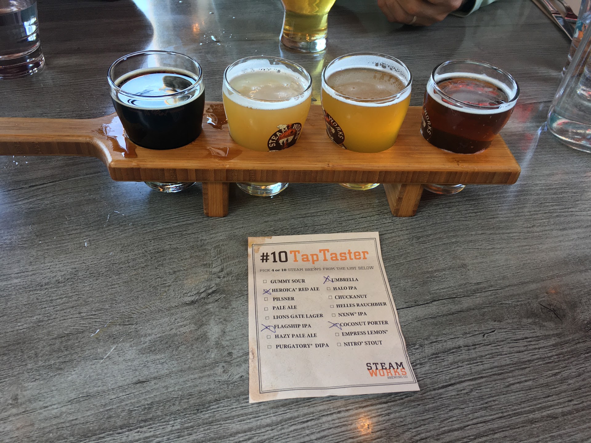 Read moreAs far as Vancouver breweries go, Steamworks may not have the most inventive beer, but they do classic well. As a restaurant, it’s great: interesting building, classy food, and great beer. I visited the restaurant once in the distant past and don’t remember the details, but I remember that it left a good impression. Returned recently and had a great time again. Started off with drinks: I ordered a flight of Heroica Red Ale, Chuckanut Brown Ale, Umbrella Hazy Pale Ale, and Coconut Porter. They were apparently out of the Chuckanut, and without asking they replaced it with the Flagship IPA because it was “award-winning”. That is great but IPA’s are my least favourite beer. I can be coaxed into trying one if it’s got something unique going on but this beer is not trying to be anything except an IPA and while I can respect that, it was not for me. Luckily I was sharing with someone else and they took care of most of this one for me. The rest of the beers were what I hoped for, though. The food actually exceeded my expectations! I had the Tofu Goddess Bowl, and the tofu had this hot honey-esque sauce and a crispy coating that was delicious. I liked that this was a healthy option but was still very interesting and flavourful. We shared a Beeramisu at the table for dessert (shared between 3, but I can totally see it being manageable for one person if you’re hungry for dessert). As far as tiramisu goes it was average (I like mine pretty soaked in the espresso), but the inclusion of stout was great. It gave the tiramisu a smoky finish but it wasn’t too strong. The restaurant is huge (if you have the chance, walk around and check it all out) and they were busy, but they seem to have the appropriate volume of staff to handle the volume of customers. Our waitress was attentive and friendly despite having a lot of tables to keep track of. Other than the replacement beer in my flight, it was stellar service. I was also pleasantly surprised when we showed up at 6 on Saturday with no reservation and were seated...