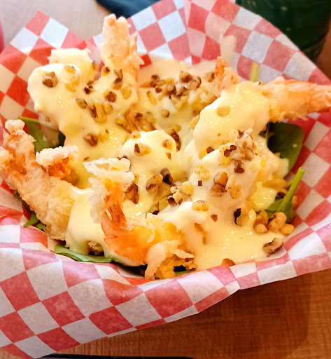 We also ordered the ebi mayo but the batter was undercooked and soggy. The ramen was also cooked in a clump and the soup was heavily seasoned with MSG.
