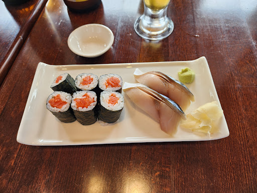 I just recently visited this place and I found it to be a little unwelcoming, I ordered some food which ended up costing me $22 which was one mango roll one yam tempura roll and two salmon nagri. I then asked if I could have some tempura sauce for my Yum tempura roll, the woman asked me did I order tempura and I said I would’ve the Yum temporal, then she said to me I would have to pay an additional one dollar for a small amount of tempura sauce. A California roll there is $4.50 which I suppose is with an average but it’s still a little pricey. I have the mango roll that I had was not too bad the mango was in season so it was a really good flavour they had some kind of Teriyaki sauce on top and it came with mayonnaise and on the menu it comes with Fish eggs. I asked for it without. I was happy to see that when I got my order I didn’t have the fish eggs as I do not like the texture of the fish eggs. However the presentation was a little messy but the food was actually pretty good. The part that I was upset with is that if I asked for some tempura sauce I would have to pay an additional dollar for that even though normally these places give a tiny little container that’s about the equivalent of like 15 mL. Or something that’s the amount of 15 mL a dollar is far over a price for something like that, I would’ve gladly paid $.25 or something like that but I will not pay a dollar for 15 mL of liquid. The inside of the restaurant was clean and tidy and there was a seating area as you walk into the door just immediately to your right. The offputting part of this restaurant is that there’s $8 minimum down in fee instead of just allowing yourself to dine in regardless of how much you’re paying. It almost made it sound like it wasn’t worth their time to have you come in for just a California roll and a pop. I’m giving this place a three star as opposed to a five because the atmosphere was clean and the food was decent although I’m not giving it anymore because the food was overpriced for what the flavour actually brought to the table. The price should’ve been more like $3.75 for California roll and $8.95 - $9.75for the mango roll that I had. However I’m betting that that mango roll was probably $12.50 - $13.35, The yam tempura roll I’m guessing was also in the $4.50 range because I got a pop and, two salmon nagri and the whole thing came up to $22. Other sushi restaurants I’ve gone to usually run me About 18 bucks for what I just purchased. And the flavour is significantly better. I found the food over all blend but sufficiently tasty because I ate the...