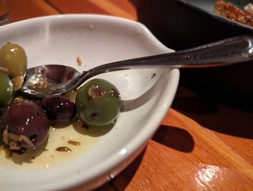 the waitress knew that most of our group was sharing, but two people in our group due to food allergies were not. When one of the orders of crostini came, a server (not the person who took our order) just put it down next to the nearest person and left. As that small party ordered a similar dish they started eating it. Turns out it was not their order, but rather for the larger group. The staff could have taken extra care to ask who the item belonged to. We had a good laugh about it, but I think the small party felt bad.