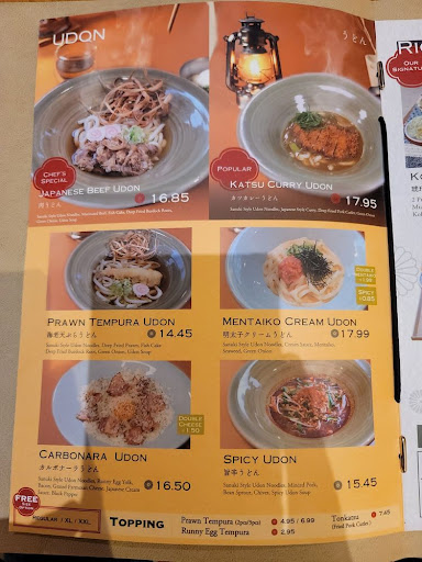 Read moreWent on a Saturday lunch time at 12:45. Ended up waiting 45 minutes which I can't blame them. I have a prawn allergy and went into this place knowing that most of their menu contained prawn tempura, hoping they'd be able to sub it out for something else. I asked if they could substitute the prawn for vegetable tempura instead and the server said no they don't do substitutes, even if I have an allergy. That was kind of upsetting. My other friends went the next day and one of them had a prawn allergy as well. She said her server let her substitute the prawn with other veggie tempura!! At least have some consistency................