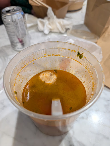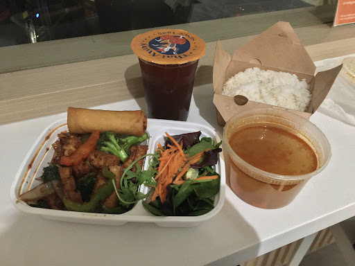 Read moreThis Thai Away Home is not a brick-and-mortar restaurant, but a cloud kitchen located in Club Kitchen, a collection of cloud kitchens that can be ordered together for takeout or delivery or eaten in the small dining area. The website is the best way to order since you can order ahead, but there is an electronic kiosk there if you prefer to order once you arrive. This dining area is staffed by one or two liaisons who are usually friendly and can help you order if you need it. The dining area is not terribly comfortable for dining in because it's so bare, a little small, and the entire space catches the breeze whenever the door opens when it's cold out. But it gets the job done if you just want a place to sit and eat your meal while it's fresh. As for Thai Away Home itself, it was so-so. Not offensive, but I don't think I'd order food here again. I got a combo for one with tofu basil stir fry with bell pepper. Good flavour to the stir fry, but too oily for me. The hot and sour broth was also oily and the few bits of onion and carrot were very mushy. The salad was fresh and I really liked the dressing. Not cheap at $20, but lots of food. The Thai tea and Thai coffee were both good. I would consider getting a drink again while ordering food from another Club...