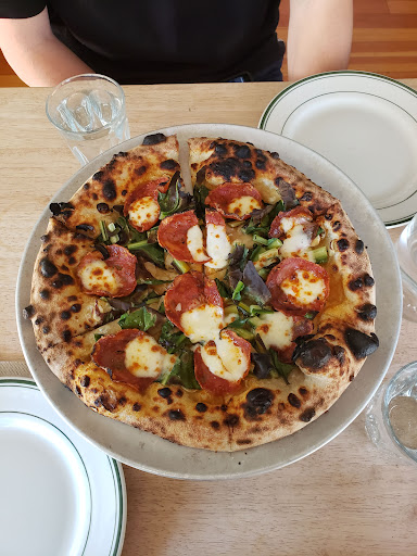 Read moreSome of the best pizza we've had. The actual restaurant space is a cafe by day and pizza place by night. Their pizzas are a solid personal sized pizza. The sourdough crust is just amazing, nicely charred and had a great chew and so much flavour because it's sourdough. We ordered the sausage, margherita, pamplona, and pancetta and shared between 4 people. All of the pizzas we had were delicious. Our favourites weres the pamplona which was a pepperoni pizza and the pancetta which had a bechamel and gorgonzola sauce base. They also had an amazing, unique, and affordable wine selection. We ordered a lovely bottle of gamay wine. All pizzas are baked out of their trailer outside...