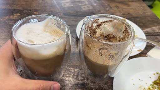 The atmosphere was cozy and inviting, providing a warm respite from the cold weather. I ordered a Turkish coffee latte, a vanilla latte, kunafa, and baklavas. The pastries were well-cooked, but I noticed a distinct oily taste, which detracted a bit from the overall enjoyment. Perhaps a slight adjustment in preparation could balance the flavors more effectively.