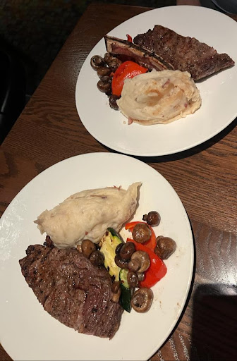 Read moreVast steakhouse on Granville Island. Front area with bar is quite bright and noisy, inner sanctum past the kitchen is more dark, intimate, classic steakhouse, with a few windows at the booths near the sidewalk that allow the sun to enter. Thereâs also a stairway going upstairs, but I didnât investigate whether that dining room is used. Lots of staff and a very warm welcome. They have a dispenser of flavoured water at the entryway for parched visitors, unlike Joey, which usually presents a flute of sparkling wine. Happy hour provides discounted prices on libations up until 6 PM on weekdays, and I had a lovely glass of sparkling rosĂ© as we had come to dine at 5:30 before heading to a Fringe show. Since weâre vegetarians, we ordered the brussels sprouts without the bacon. They had a nice char from the roasting, but were a bit dry without the fatty bacon. There are a few small croutons mixed in, and a grating of cheese on top. The Caesar dip served on the side was delicious. The complimentary loaf of sourdough with the cheese butter is spectacular. The main of vegetarian shepherds pie was a nice option, served with a healthy portion of mixed salad topped with pickled onions in a light vinaigrette. The shepherds pie itself was served in one of the black porcelain ramekins that the brussels sprouts and the mac & cheese were served in. It looks like itâs a cast-iron mini skillet, but probably much easier to run through a commercial dishwasher. The flavours were very good, and my partner who is not a big fan of mushrooms, was grateful that there were big pieces, only the flavor. The lentils and vegetables Quite small with very little texture, and only came about halfway up the inch ramekin. The mashed potatoes on top were light and fluffy. I might have expected that they would have been piped in rosetteâs on top. It was nice to see something other than a vegetable pasta, or a grilled portobello mushroom cap for a change. The side of mac & cheese was ample, talked with beautifully crisp Panko breadcrumbs. However, it was bland with very little cheese flavor. There was certainly no stringy, mozzarella or shreds of cheddar visible. On a future visit, I would probably order the cauliflower with hot sauce on the side, and a wedge salad with blue cheese and skip the bacon. Our server was Ally, and she did an excellent job of taking care of us, along with the team who delivered each of our courses and work together beautifully. Bathrooms are clean and well stocked, although finding them in this maze is the reason why they point them out as youâre going to your table. I would have rated 4 1/2 stars instead of five because the value was good. However, the comprehensive dining experience was certainly above a four. The polyester fabric napkins, and the cutlery is of a very high grade, and the salt and pepper grinders on the table a nice touch. All in all, a great pre-theater experience, Iâd like to come and dine again and save some room for...