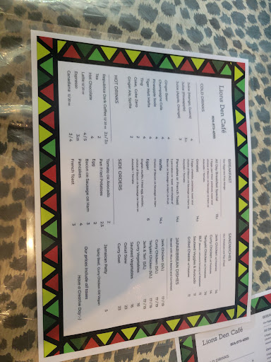 I'll definitely be returning to try more of their truly filling soul food made with pure joy and love as it should be! This is the place to go if you're feeling homesick for some Caribbean-style breakfast, lunch or dinner. If you see Ken, make sure to say hello! This man has the strength of a lion and is clearly loved by all!š¦šš“ Next time we return, we'll take a picture of the meal! It was so good that we ate it faster than the thought occurred to snap a photo of this experience. Another great sign! Haha! Cheers to the team, friends, family l, regulars and do-gooders of the Lion's den Cafe who had supported them and who have continued to support them to enable their cafe to remain open to this day! One love and as Ken says, "Have a...