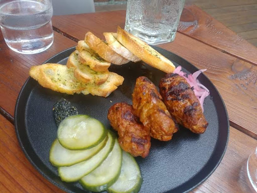 First of all, if you are a lover of interior design and are tired of the endless, too-often-austere modern, do yourself a favour and visit the Red Accordion. This place is eye candy for the soul. LOVE the interior. The dark blue painted walls, warm accent lights, and candles throughout are gorgeous. I was happy as can be with all this to look at. I also appreciated the eclectic, vintage plates and glassware. This place is special. They say they want you to feel like you are coming to their home, and they have absolutely achieved that. I suspect you're more likely to have a good experience in the evening, after the sun is down. This place feels special, intimate, a real respite and hideaway from the too-often loud Vancouver. This is the best feature of the restaurant.