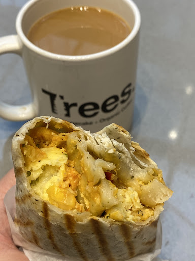 Read moreI really like Trees! I've been to a few of the other locations and now am working near this one so it looks like this might become my new regular location. The staff is really polite and there's a good atmosphere inside. There's an area with comfortable armchairs in the back, and little booths tucked into the wall, plus regular tables and counter seating out front, and a few patio tables. It's all very clean. It seems popular with both laptop workers and bigger groups/families. So far I've had the spinach feta quiche, key lime cheesecake, vegan blueberry scone, iced chai latte, and iced americano here. I've had slightly mixed experiences with the cheesecake depending on the location, but the key lime here was great - it had a nice fluffy texture. Their slices are a good size for me where the portion isn't excessive but big enough that I'm not left wanting more. The quiche was also really good, but I would advise to only order it if you really like feta because the feta tang was very prominent (I liked it, but it's a strong and maybe particular taste). Americano and chai were both great, the americano had a good crema on top and the chai wasn't too sweet. The chai wasn't really spicy like an authentic Indian chai but it was still made well - brewed strong and lightly aromatic. The blueberry scone was okay - it had an interesting texture that was almost like a soft-baked cookie (not as sweet though) but was made with dried blueberries and would have been so much better if they had used fresh (or even frozen). This is really the only reason I give 4 stars, it just seems like such a missed opportunity, although it's still worth a try if you want a scone. I will probably be back here on occasion as I really like all of their food and the prices are pretty reasonable for...