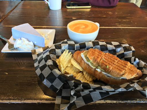 Read moreI went here for lunch with a group while working nearby and back a few nights later for a tea to go. Really enjoyed the food and drink here; they have some cool stuff. For I got an Avocado and Brie Croissant with Hibiscus Mayo, a Cloud Cheesecake, and a Red Latte. The croissant was nicely flaky and the proportions of filling to croissant were right. The hibiscus mayo sounded a little bit unusual with brie but I was too intrigued not to try it and it was great. They used just enough for the unique floral tartness to come through in every bite. The cloud cheesecake, which uses butterfly pea flower, was also really good! The butterfly pea flower gave it a really subtle underlying floral flavour and the texture was creamy but not heavy. The red latte (rooibos espresso) was a little stronger than tea-style rooibos lattes but very smooth. I just had a Blueberry Green tea on my next visit which was quite good, donât remember whose tea they use. I think the prices on everything were fair. The only issue I had was that I got an aloof feeling from the staff, in particular this one barista that was there both times. On my lunch visit, there was enough of a local crowd there that it was a welcoming hang, but when I went to grab a tea in the evening, it was empty save for one group and I kind of felt like I was walking into a club meeting that I hadnât...