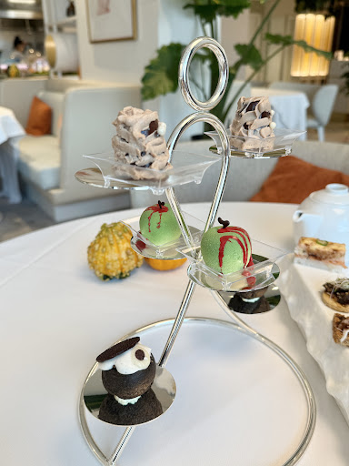 7/10 for overall delicious Halloween tea set and atmosphere, cozy spacious seating and modern interior design; would come back to try their regular menu. I like that they have more savoury items than sweet, but both are done well. The scones are a highlight and freshly baked. Favourite was the sablefish and salmon oshi. Desserts were not overly sweet, very uniquely made and all the flavours came together.