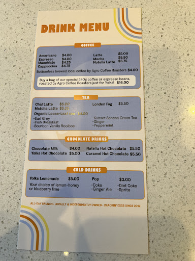 We arrived at Yolks for brunch around 12:30, finding it busy but not crowded.