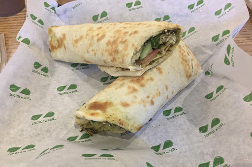The large dining space is clean, modern and bright. Food is brought to your table if you dine-in, although it feels like cafe seating with a mix of high tables, booths for 2, plush chairs, etc. I had the Classic Zaatar and added mushrooms. For $6.49 (+$1.49), it was an affordable meal option! The sumac spice was very strong, and I was glad to have added the mushrooms to diversify the flavour profile. With the toasted sesame seeds, it had a gritty texture. The flatbread was great! My friend had their Hummus Avocado Wrap ($12.99). They found it tasty with a variety of vegetables like tomato, avocado, eggplant and bell pepper. This wrap was served cold in a spinach flatbread. The one issue was that the wrap leaked a bit (likely a mixture of the chili spread, olive oil, and moisture from the veg), making it a bit messy when eating. We shared the yam fries ($8.99) which came with a small dip (spicy, perhaps chipotle). This was a miss, and we'd skip it next time around.
