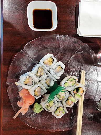 Usually there is parking in front of the restaurant. Fancy Sushi is one of our favorite places to eat sushi and they keep the plates coming! Its good to find classy food fare in this little city. Sushi is served on long dishes, and the rows are beautifully laid out. You can order what sounds tasty from the menu, and also there are tv monitors that scroll through images of what looks good with names on the images. We always begin the meal with gyoza while we wait for our sushi. Their green tea comes in a huge pillowy teabag that will make a strong tea. I advise getting a pot of hot water for a few cups. Goma-ae is a tiny and tasty spinach or avocado in a light dressing. I ask for mango with salmon tataki. There is a good selection of spicy tuna, salmon, crab and shrimp maki rolls. Tables have good space between them. The atmosphere is quiet and calm, the acoustics of conversations at tables around the main room are usually pleasant and not overly audible. We really enjoy this sociable restaurant. People can order to-go here and service is friendly and efficient, not long waits for food. I recommend this for an enjoyable dinner. I will keep...