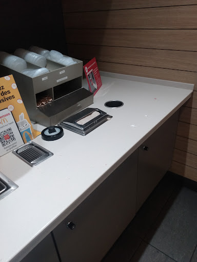 Read moreHaving been to over 100 McDonald's restaurants throughout Canada and the US, I feel like I know what a good McDonald's entails. I'll start with the waiting times. We ordered at 13:04 and only received our food a little over 45 minutes later. Some customers were livid so we didn't complain. The staff and manager were dealing with several angry customers. I would like to say that the food was worth the wait but I'd be lying. The egg McMuffin was old and the fries tasted like cardboard. The kids didn't complain about their poutines but didn't finish them as they usually do. We went to get some ketchup to drown the taste of the awful fries, but there were NO paper containers. Please see the pics... No straws, no ketchup containers, no salt/pepper/vinegar. The area (near the fountain drinks) was so incredibly dirty! As was the entire restaurant! I'm also wondering if this is a separate franchise and not a part of the McDonald's chain. It should be shut down as it's seriously beyond disgusting. I should mention that the pancakes were ok but I couldn't enjoy them as I was so...
