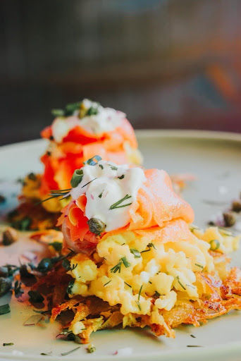Food (â â â â â ): The food here isn't just delicious; it's a work of art. The presentation of the dishes is nothing short of spectacular. Each plate is a feast for the eyes, and it's evident that the chefs put thought and creativity into every detail. And the taste? It's beyond amazing. I had the smoked salmon served on a rosti style potato, and I was blown away by the combination of flavours. It was a delightful explosion of taste in my mouth, and I couldn't get enough.