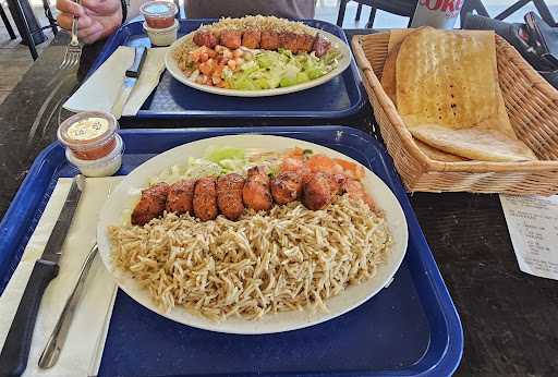 When Wonderland closes to prepare for Halloween Haunt (5-7 p.m.), this place explodes with customers. We had stood outside debating if to go in and decided on a whim to try this establishment for the 1st time. The service representative at the counter was very kind and supportive and made a lovely recommendation that allowed us to try a ground beef kabob and grilled chicken with rice and salad. The entire meal was well seasoned, flavourful, and fresh. I especially liked the sauces provided on the side. The establishment is cash/debit only, so unfortunately, many patrons left as it directly limits those prepared for Wonderland's cash free policy. I believe a notice should be posted on the door or outside on the wall, which would limit people lining up only to be disappointed at the cashier. The restaurant process is as follows:- There is no table service, you place your order at the front, pay, and you receive a receipt with a number to be called to the front when your meal is ready. Your meal is presented on a tray at the front and you take it back to your table. For 2x meals, 1 masala tea, and a coke zero, we paid a little under $45, which was very inexpensive as we normally spend 4-5x that at St.Louis with each visit to Canada's Wonderland. Neither of us could finish our meal and felt a little guilty wasting, but it was good to note for the future. We also purchased the mango Icee/smoothie at the end of our meal, which was very flavourful. In all, it was a pleasant experience.