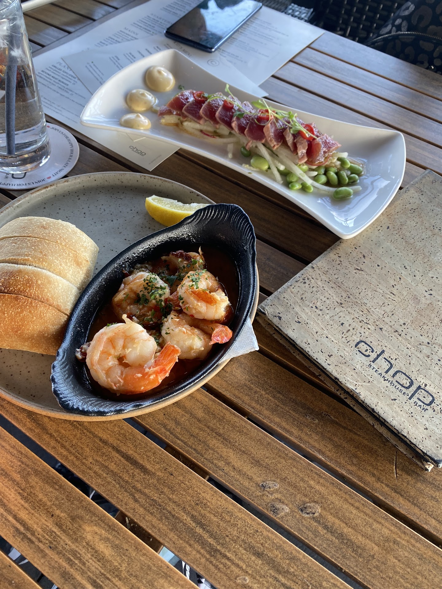 â Chili shrimp đ¤ As this was served on a hot plate drenched in butter and seasoning served alongside a bun of bread this is a great appetizer.