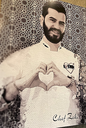 The pictures on Google do NOT do it justice. In person the decor is far more warm and inviting. The entrance is welcoming if not a little tight. You are greseted to a large photo (painting?) of the executive chef, Chef Zeki in his whites making a hart sign to show you greetings and welcome. Pretentious? Maybe. Inviting? Definitely!