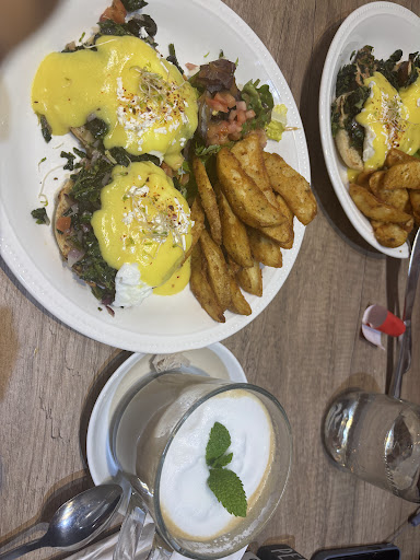 Another 30 minutes go by after ordering our food, we had to ask to get utensils. The coffee also took a while.