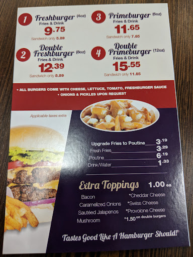 Read moreThe food is good, but the staff is grossly incompetent! We came to get 3 primeburgers and one meatless burger. When I asked the teenager at the counter about a meatless burger, he looked puzzled, “Like, chicken? No, we don’t.” We found a poster on the wall, which advertized Veggie Special. We asked about it; his answer was “It's like a regular burger, but with more veggies.” I asked again, “How big is the patty in it?” He said, “I don't know, 6 oz?” So, we ordered two Veggie Special combo, and a poutine instead of a meetless burger we wanted. When we received the order, it didn't include fries, and our Veggie Special actually didn't contain any meat! The clueless teenager went on defensive, saying, in effect, it was all my fault! The manager was also trying to defend this guy, who couldn't manage to learn four items on the menu! In the end, she REPLACED one of the meetless burgers with a primeburger without pickles and onions! No apologies or other compensation was even offered!! Needless to say, this was our last visit...