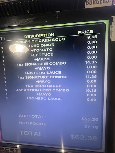 Read moreHi, I had exactly 15 minutes to get something to eat before I went back to work. I came in put in my order for a signature burger with a poutine the man that took my order said the gravy for the poutine was not ready I decided to go with chicken finger instead. I told him I wanted multigrain bread instead and he told it would be I extra I said ok. He said it would take 10-12 min for order. When it was ready he handed me the bag I checked it and there was no dipping sauce so he gave me the he sauce once I asked. After leaving I realized he never gave me a cup for a drink I went back got a drink. When I got back to work opened my burger and sure enough not the muliti grain bread I asked for ( I have a poppy seed intolerance) I decided then to call. He told me it was my responsibility to review the order and make sure it was correct before leaving and that he never charged me For it as though he was doing me a favour. Beyond that he told me he showed me the screen to confirm the order which he lied about it. Being a business owner myself I feel bad for the person who has made a horrible decision to hire this kind of person as their employee. People like this man retract, and ruin your business because you lose customers like me. I will not being eating at this location again. Good luck with...