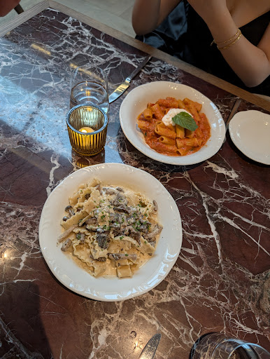 As for the food: I ordered the Mushroom Truffle Pasta, which was absolutely delicious. The pasta shape was very enjoyable, though a bit tricky to eat gracefully because of the sauce. However, the abundance of sauce is also what made the dish enjoyable: it was rich, flavorful, and creamy. The portion was satisfying - filling without being too heavy. I especially loved the variety of mushrooms used. I also sampled my companionâs Spicy Rigatoni, which was equally impressive: nicely sauced with a bold kick that added depth to the flavor.