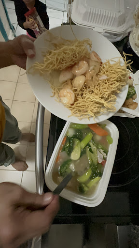 Read moreUsed to be our favourite spot to eat in 2021, came back today dec 26 2023, and made the huge mistake of placing an order for PICK UP rather than dining in as we did before. We placed our order of 3 meals and a strawberry smoothie around 5:45 and it said it would be ready for 6:40. We came at 6:35 and they said 5 more minutes, we waited until 6:55. They were empty except for 2 families that came in after us and they were served their food within 20min. The server was very rude when telling us just to wait. That was the least of our concerns. We got home and the "seafood" plate we ordered came with 95% veggies and sauce and 3 pieces of RAW shrimp, a tiny piece of crab, and half a fish meatball.. The rice was dried and crusted from sitting out too long, which made it inedible. My husband and mom had to ration them so they could both have a little bit of meat. The shrimp seemed to just been taken out of a freezer and tossed on top of the warm noodles. The smoothie was completely watered down to the point it just tasted like an unflavoured slushie. My meal of tofu was also flavourless and watery. We suspect this was because we didn't tip in the online order (for PICK UP). We always tip at least 20% when we dine in. Not because their service was good, but it was good enough. We paid $72 for frozen/raw, old and watered down food. Their service has been declining since we first ate there in 2021ish (which btw they didn't have any Covid protocols such as temp check, checking vaccine status's, etc). And now it has hit rock bottom. If you pay $72 for 3 meals and a drink it should be at least cooked and come with what's advertised. Lost a loyal customer. Pic is of the frozen 3 shrimp/1 piece of crab/fish meatball my mom and husband...
