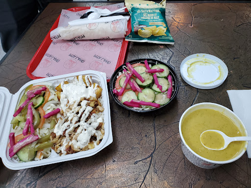 Take the extra five minutes and drive down to the Langstaff location; they are a lot more generous with their portions (chicken, rice and potatoes) and also food is always HOT!!! I’ve never had to pay for tzatziki and their toppings for the salad are always fresh (or at least better than here)