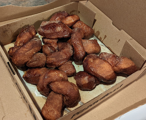 I have tried ordering the garlic knots from this location 3 times in the past last year. Each time they arrived burnt, smelling bad, tough to bite into, and taste terrible. I ended up throwing them out each time. The knots in the attached photos went into the garbage. I am the definition of disappointed loyal customer.