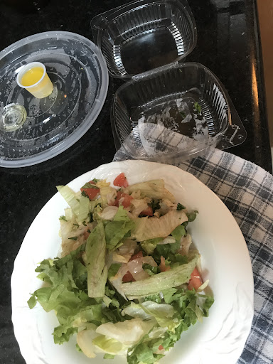 I actually went inside the restaurant, because it was my first time there, and I ordered a few dishes⦠The first one being the lentil soup, which was very good. I ordered a side hummus appetizer, which was very average. And I ordered a chicken souvlaki plate Which came with fries and rice and a basic salad which consisted of mostly lettuce, which was also average at best.