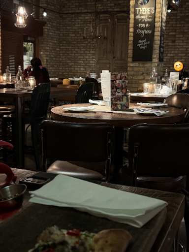 Read moreTook my family there for the first time Monday evening. Really unimpressed. Our server was friendly greeting us and told us she'd take care of us. However, it was other servers that eventually brought our food and just kind of left it on the table, which makes sense because they don't know who ordered what, but they didn't ask, just put it down for us to hand out ourselves. Server did come by to check on us, infrequently and insincerely, but overall, the service was lacking and slow even though restaurant was not nearly full. All our dishes were terribly bland. Tasteless. Started with the Charity Bread. Middle was cold - made me think it was previously frozen or in the fridge and warmed, but was not warmed through. Had the Spicy Fungi pizza - really bland/tasteless but a nice crust. Asked for the spicy oil to add flavour, however it was not spicy at all, it just tasted like olive oil. Table also had the mushroom gnocchi - boring/bland and the lemon shrimp pasta - zero lemon flavor. A table 2 over from us left shortly after we arrived. It was yet to be cleared by the time we left. Distracting and unpleasant to have dirty plates with left over food sit for over an hour. The ambiance seemed to have been set by the hostess. When guests requested more comfortable (unoccupied) chairs (instead of the metal ones), she was clearly annoyed. She eventually got them, but not without noticeable eye rolling and dragging them loudly. She also helped set a table near us but never picked up the dirty napkin lying on the floor beside the table - she walked over to the table twice, stepped on it, but just left it there. This made us question the cleanliness of the establishment. None of us finished our meals. Overall, the staff we dealt with seemed to be in a foul mood, service was exceedingly slow, and the food only memorable for being very disappointing especially at the prices. Although it was not busy, we were left waiting for our requested bill for more than 15 minutes. Have zero intention of returning. Do not recommend given there are so many other options. (photo is the uncleared table we...