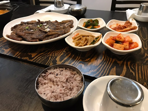 Read moreWe ordered Kalbi, marinated and non-marinated ones. They came with an egg pudding, many side dishes, green lettuce, many sauces, soybean stew and bowls of rice. Everything was okay. Marinated Kalbi may have contained some MSG, because I felt my tongue freeze during the meal. We also got some cold buckwheat noodles to finish the meal. I liked the noodles. They were fresh and sweet. They also serve you complimentary cold tea called Su-jung-gua. Service was okay. Male servers did a great job (e.g. cutting the meat very well for us, and bringing us what we asked for promptly) while one of the female staff was forgetful (e.g. we had to repeat our additional order of a can of beer and extra green leaf lettuce, and she brought us what we didn't order) and unprofessional (e.g. she went to greet other customers in the middle of cutting the meat for us). Overall, it was a decent Korean BBQ experience. In terms of authentic Korean BBQs, I prefer Sariwon or Piggy's Restaurant...