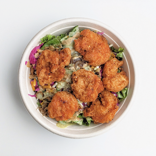 My go-to is the HOLY SHRIMP as a SALAD bowl. I top it with cheese, caramelized onions, crispy onions, cucumber, southeast salsa, and sweet pickled cabbage. Their avocado cream is a must-have sauce and this time, I requested a little bit of their roasted peanut sauce as well. The shrimp will definitely have you saying "HOLY!" because they're so crunchy and flavorful. Not to mention, a really good size! One serving is about 5-6 large pieces of shrimp.