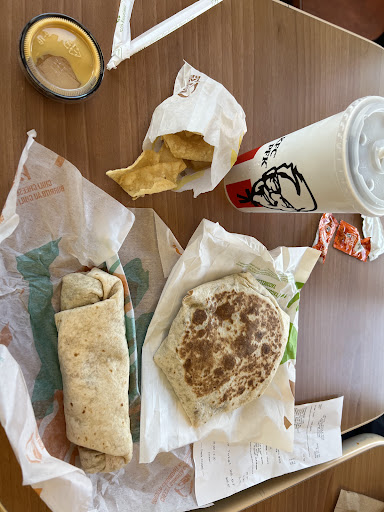 Read moreMy friends and I made the monumental mistake of deciding to hang out at Taco Bell. From the very moment we stepped in, it was clear we had entered a disaster zone. The trash bins were literally bursting with garbage, overflowing like a chaotic volcano. Tables? Covered in trash like an apocalyptic fast-food wasteland.