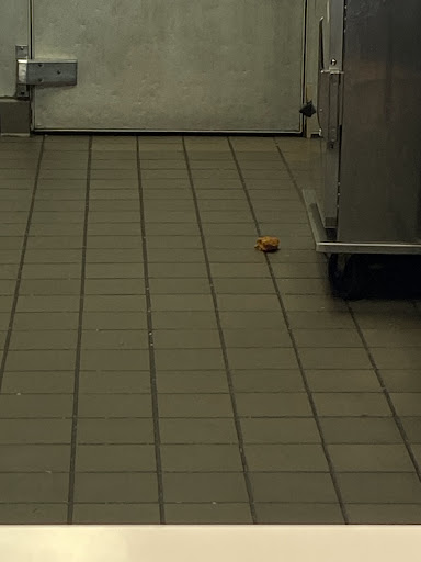The overall cleanliness is not great. I've never seen a staff member in the seating area unless on break. The customers in the area are also to blame as they can't seem to pick up their own junk that's fallen on the floors, but should be regular run through the lobby to wipe tables etc.