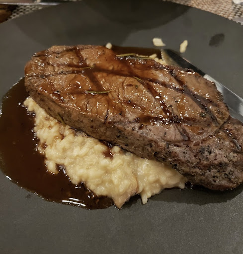 For our mains, we ordered the Rigatoni Peperonata (rigatoni pasta with fresh scallions, mushrooms, roasted red peppers and grilled chicken in pesto sauce) and the Bistecca Zafferano (10oz certified black angus striplion, grilled and served with porcini mushrooms risotto topped with a red wine sauce). Both of these dishes were not seasoned and extremely bland. We told one of the other servers and asked if they could at least bring us salt and pepper. The server apologized and came back with salt and pepper. He grind the pepper for me onto my dish and walked away before my best friend could ask him to do the same for her meal.