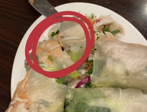 I am writing this comment to express my extreme disappointment in this restaurant since I found a skewer stick inside my salad roll (no.1 item on the menu). Please see the pictures I attached with this comment.
