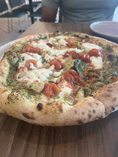 I opted for the Spicy Italian Sausage Pizza, which was simply amazing. The perfect balance of spice and flavor made every bite a delight. Adding their house-made spicy olive oil took the spice level up a notch, making it even more enjoyable. My partner chose the Pesto Pistachio Pizza, a unique and delicious combination that exceeded all expectations. Our son enjoyed a kid-friendly Pizza Margherita with no basil and double the mozzarella cheese, making it an instant favorite for him.