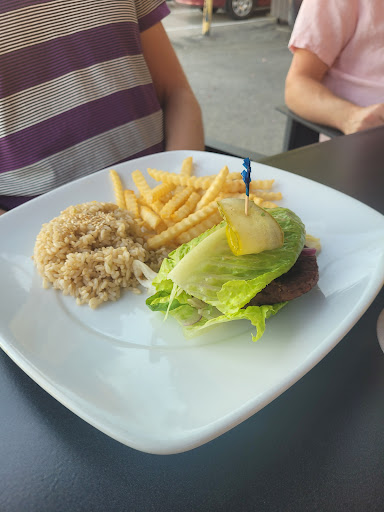 Went there on 09/10/2022. First of all our sever, Holly was fantastic! She was very polite and incredibly accommodating. She went out of her way to communte to the kitchen my dietary restrictions. For her and the cooks they get a 5 star review! 👍 This review is mainly just about the corporate side of things. When I was in Vernon I was excited to go to OJ's because from their website I was impressed to read the number of vegan options available. When we got there I was disappointed that a lot of the items labeled "vegan" we not actually vegan. I felt terrible that I had to keep asking our waitress to keep going back to the kitchen to ask questions because most of the things labeled on the menu were not ACTUALLY vegan. I also have a dairy allergy so this was very difficult to order. It must have been so frustrating for her and the cooking staff. However this was not their fault. The menu should have been clearly labeled and the company failed to do so. For instance, you cannot call the Cajun Chicken Cheddar burger if you have to serve it without the bun, cheese, and the sauce. The sides were not clearly labeled and I had to ask a ton of questions and had to keep sending Holly back to ask the kitchen staff more questions. We ended up ordering the Teriyaki veggie bowl and The Kona. The veggie bowl was pretty sad looking, there was few veggies and a bit of brown rice, there was no tofu or beans or nothing of substance. The Kona Burger was just an impossible paddy with one single, tiny pineapple ring on lettuce and a tiny bit of brown rice. The meal was so sad looking. I ALWAYS take photos of my food, I didn't even bother with my veggie bowl because it was so underwhelming. I took a photo of my partner's burger to put in this post because it was so pathetic looking. Keep in mind that this "burger" cost $20.50!